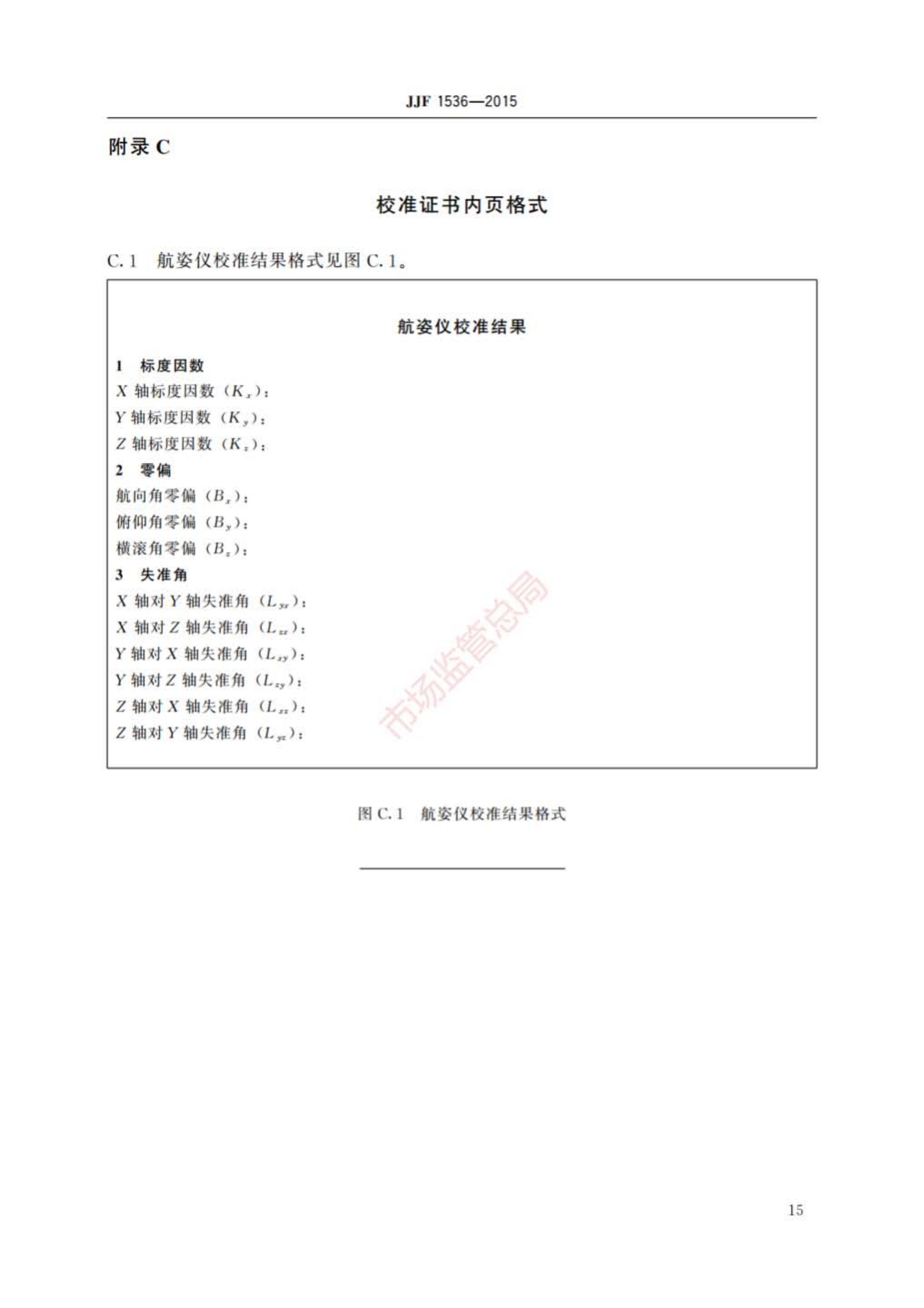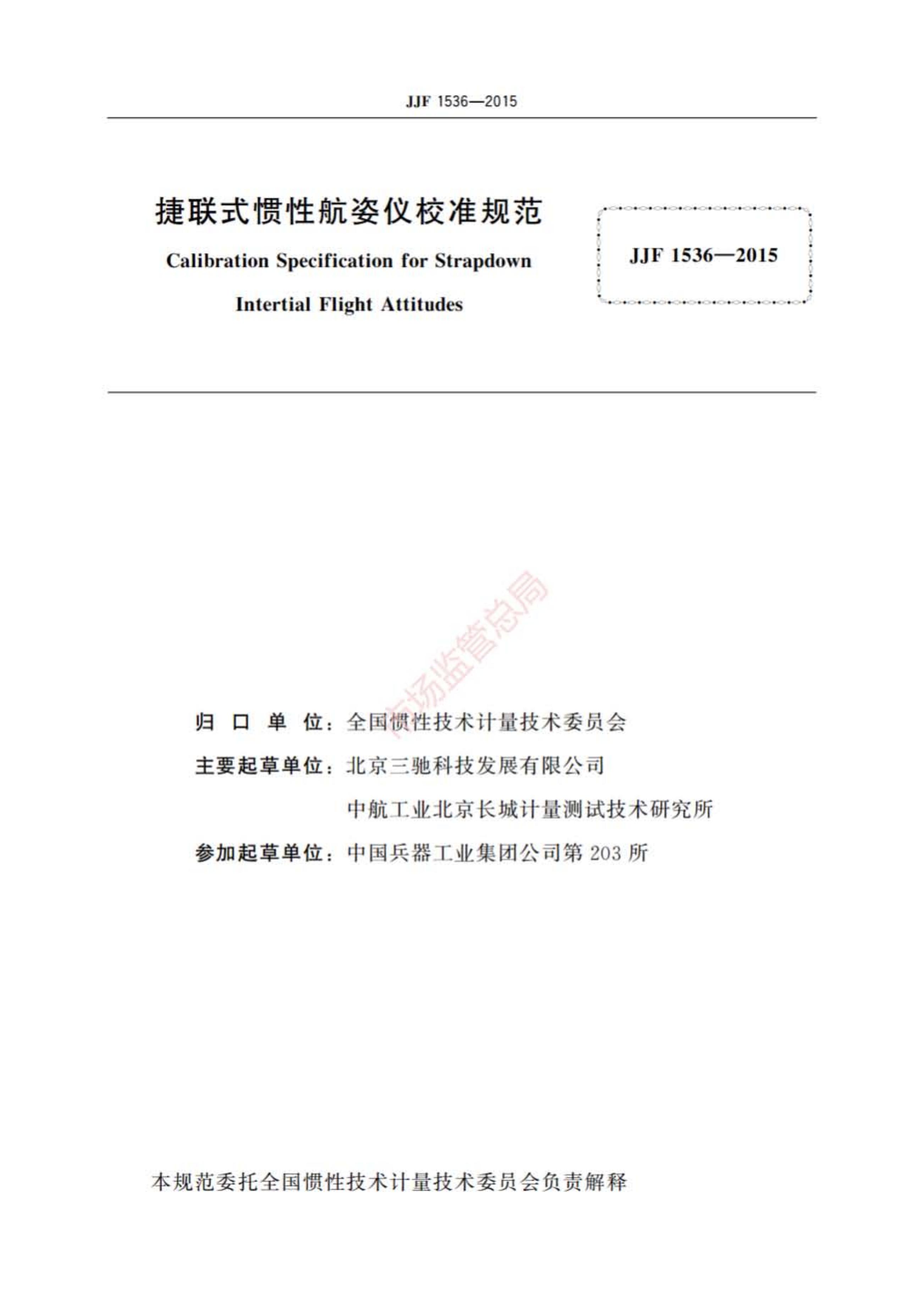 JJF 1536-2015 捷联式惯性航姿仪校准规范