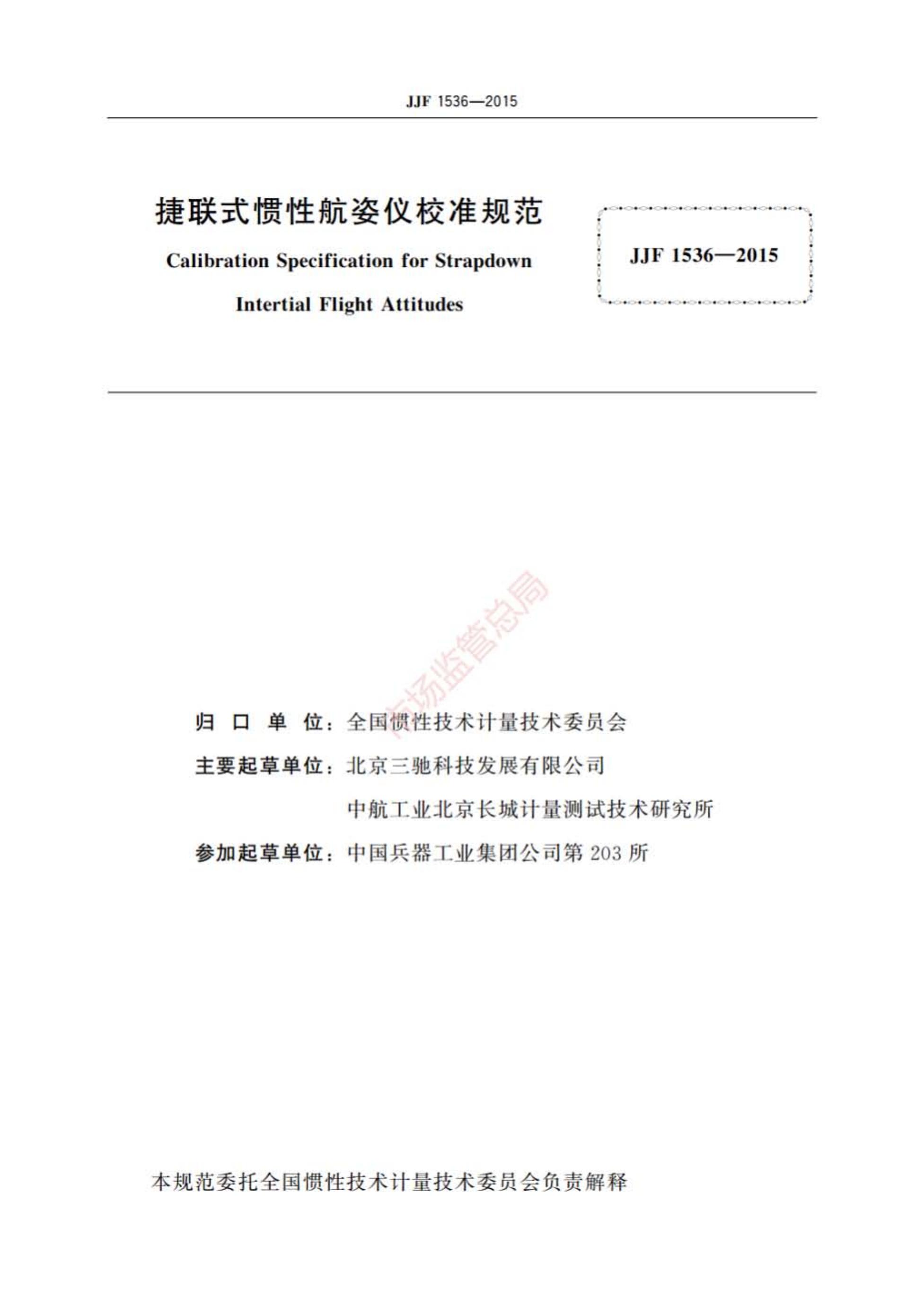 JJF 1536-2015 捷联式惯性航姿仪校准规范.pdf