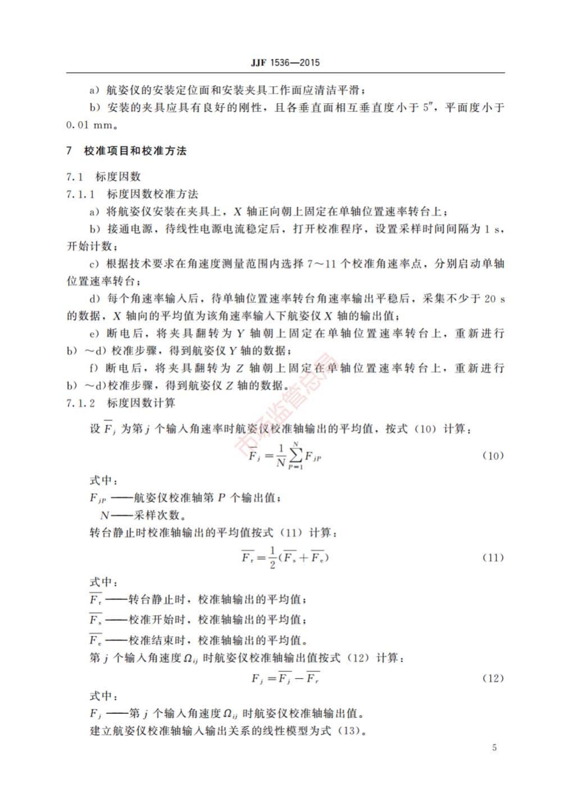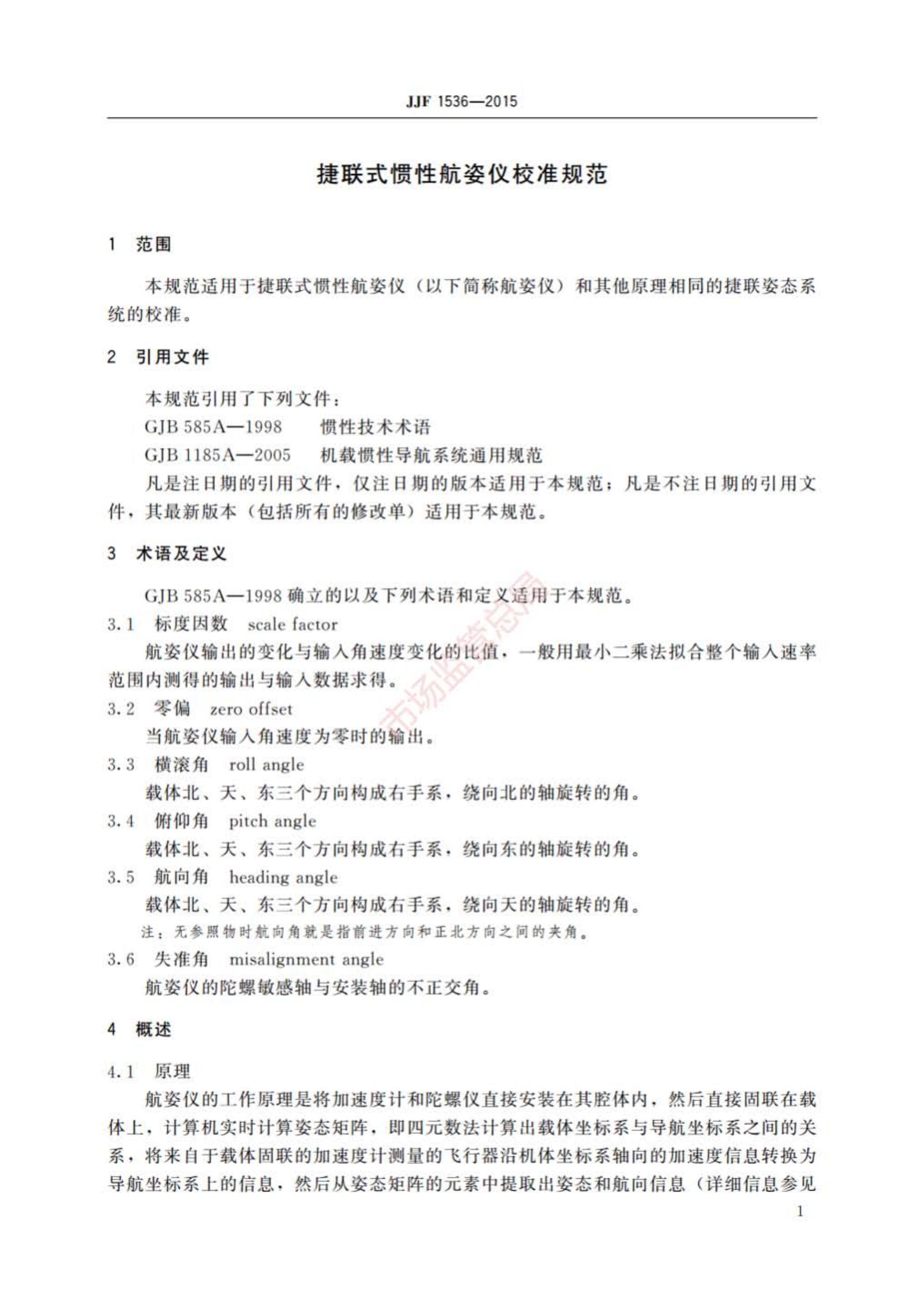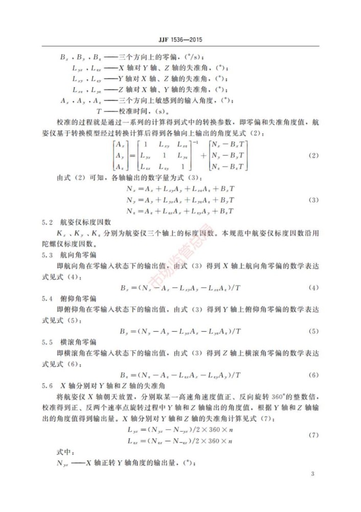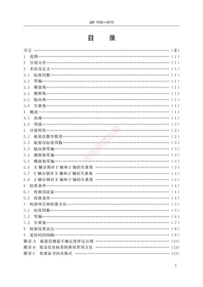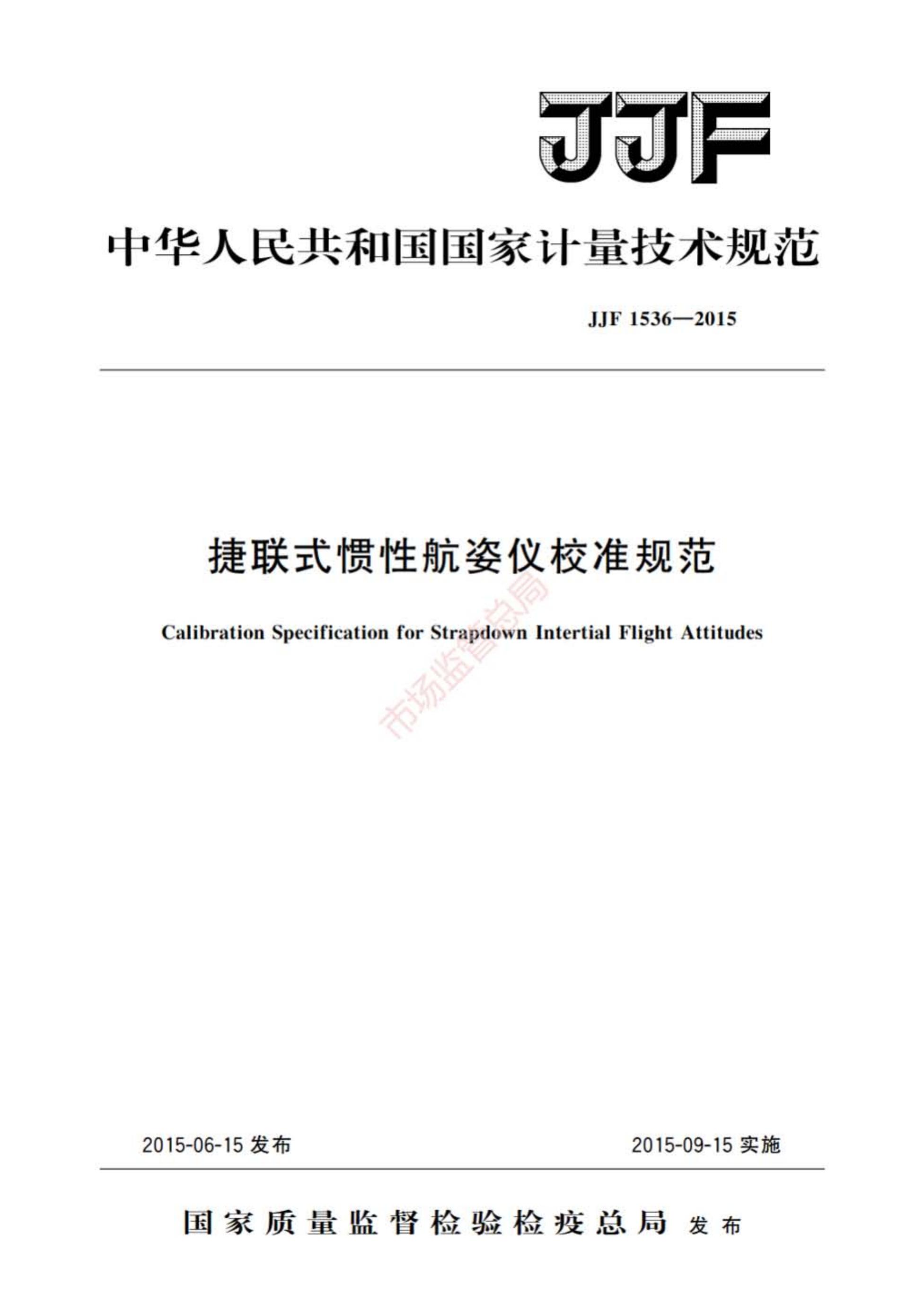 JJF 1536-2015 捷联式惯性航姿仪校准规范